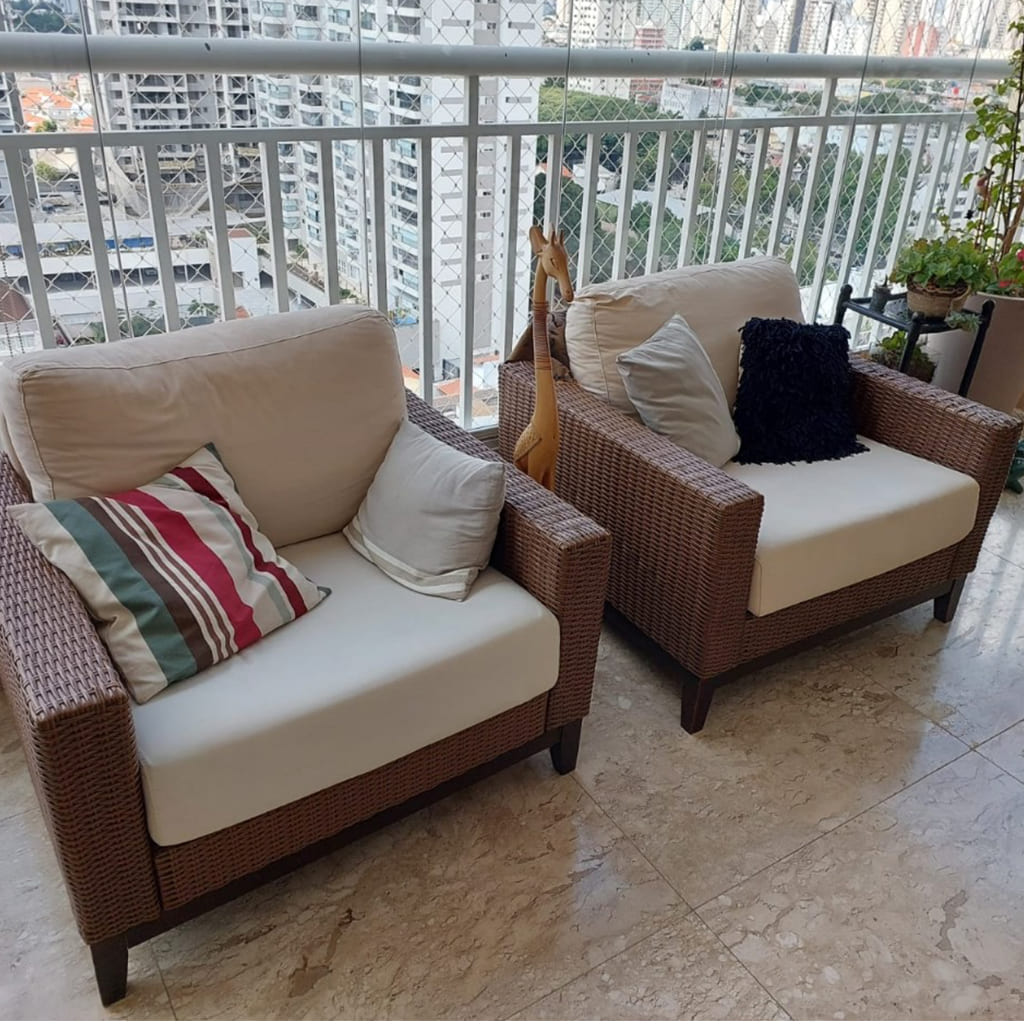 Troca de espumas e tecidos impermeáveis, ideais para áreas externas e de grande uso.
